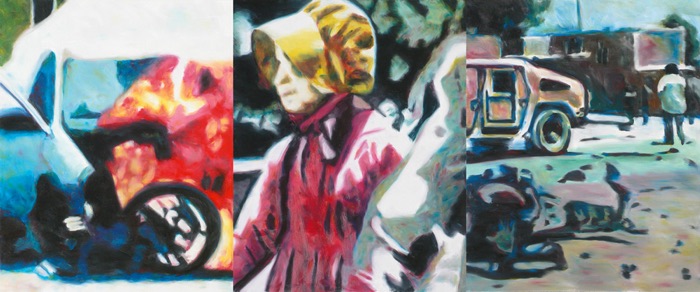 " blow up: remembering beslan", Öl auf Leinwand, 360x150 cm